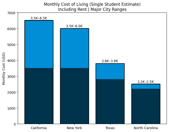 Choosing where to study in the U.S. isn’t just about rankings—it’s about the lifestyle you’re stepping into. When comparing these states (CA, NY, NC, and TX) to each other, we’ve considered the following categories: