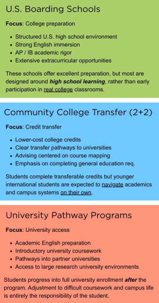 What many of these models were not originally designed for is helping a 15–16 year-old international student learn how to navigate college expectations for the first time.